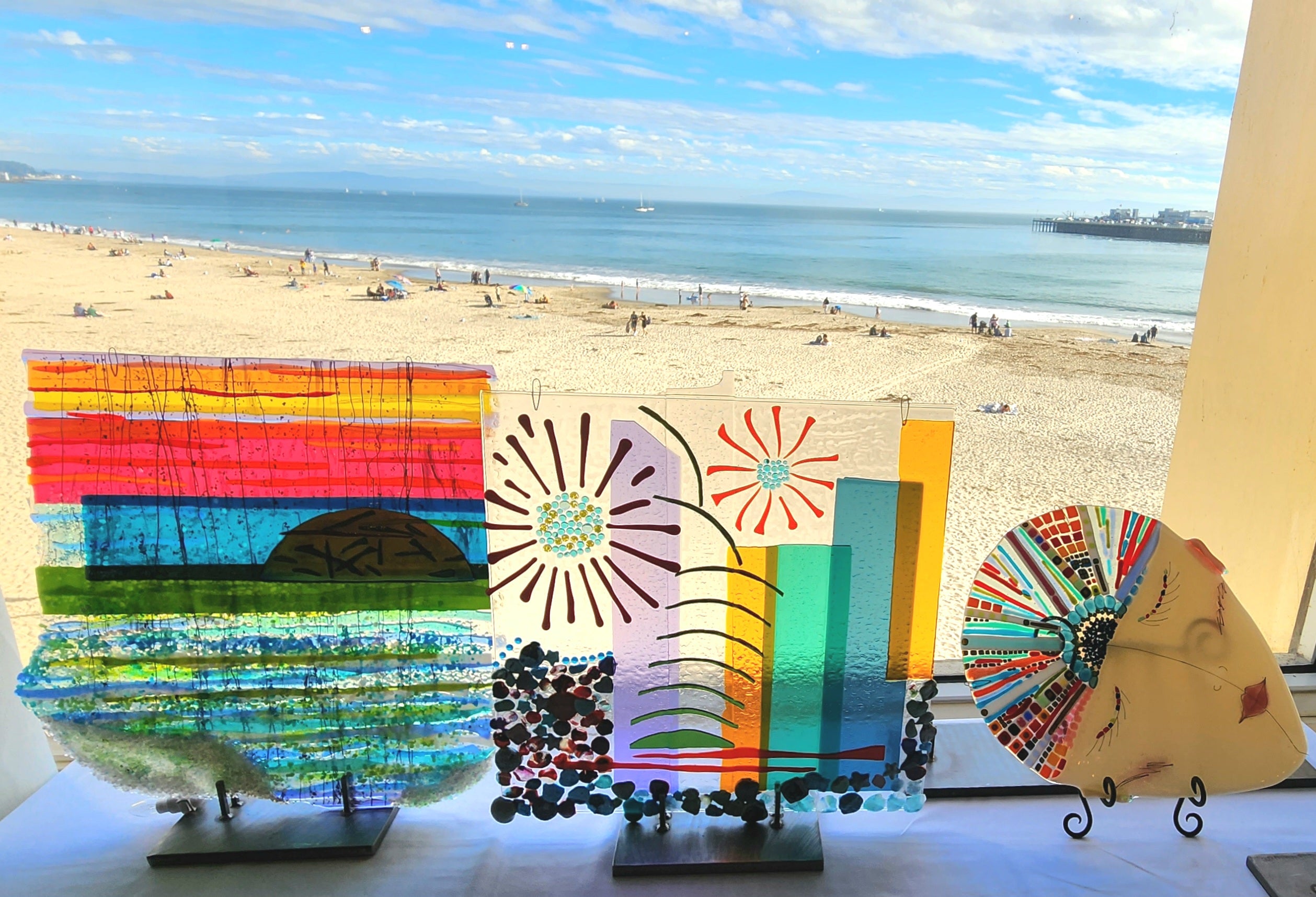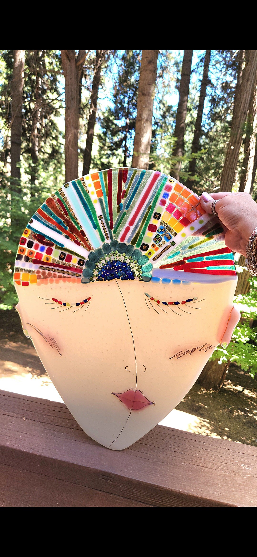 This piece has hanging hardware for hanging in a window or on a wall. It can also be freestanding by supporting it with a heavy base (provided by you or your contractor).If you are a serious collector I'd love♥️for you to make me an offer for your favorite pieces in this collection!