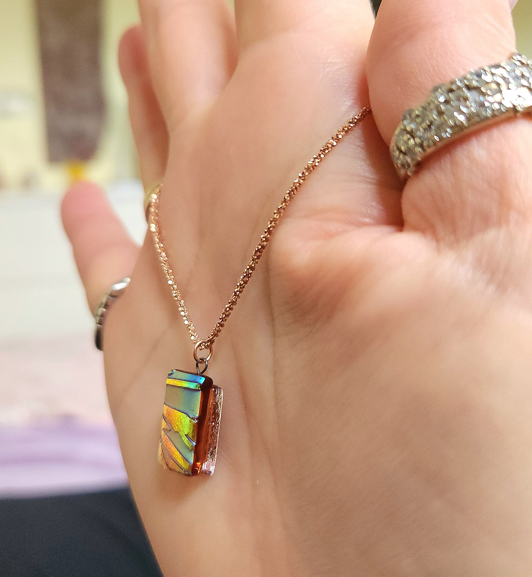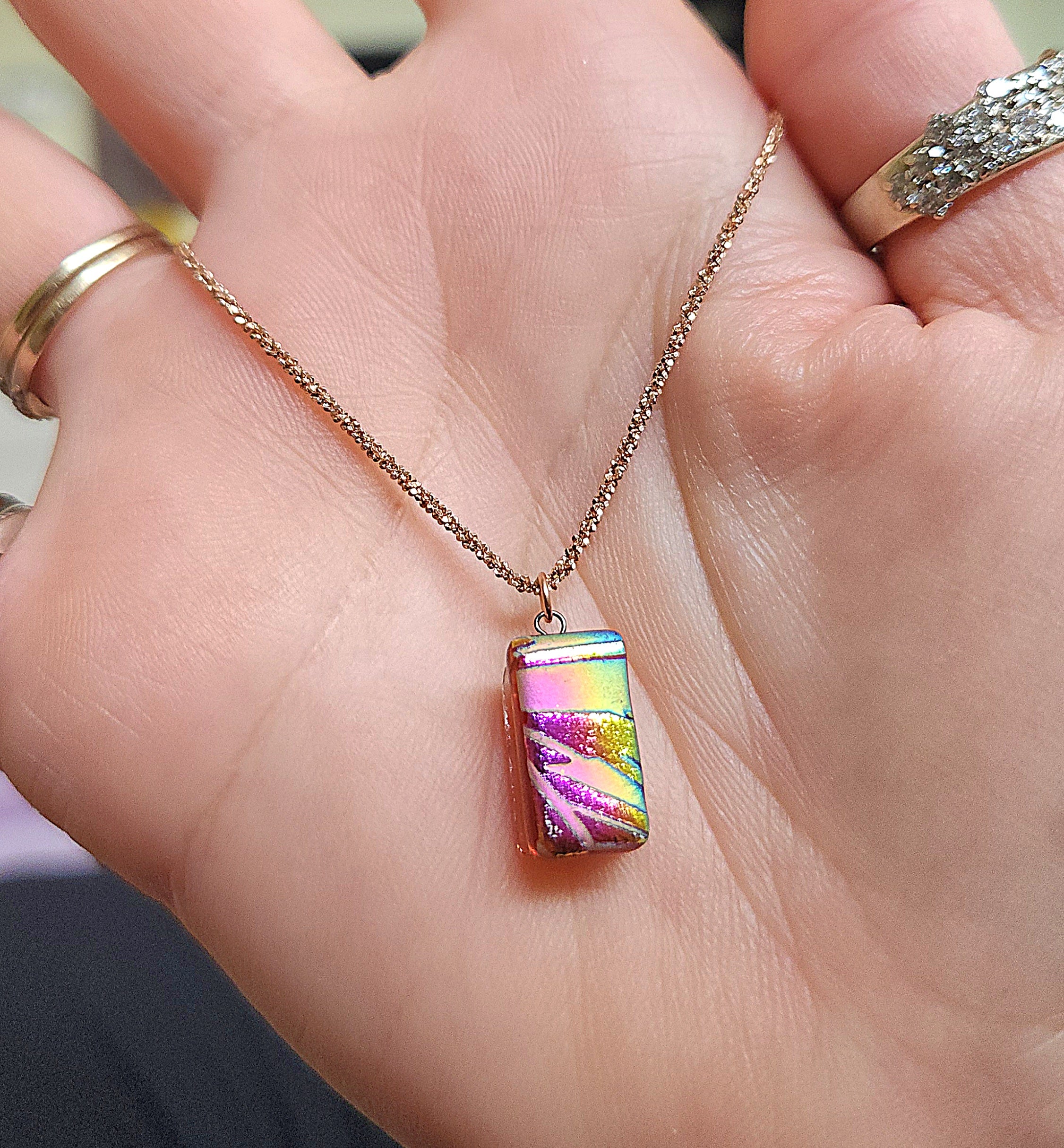 All my jewelry designs are handmade in San Francisco. I make all the glass and do not use inexpensive plated metals. Necklaces in this listing are 14k rose gold overlaid on sterling silver.